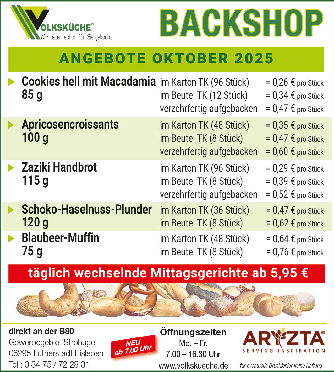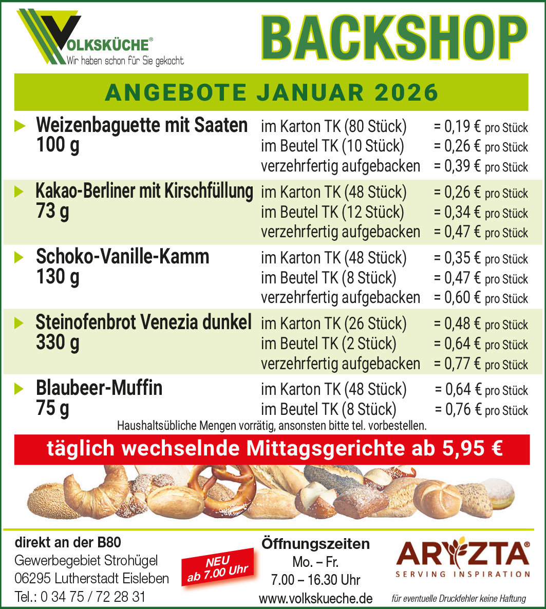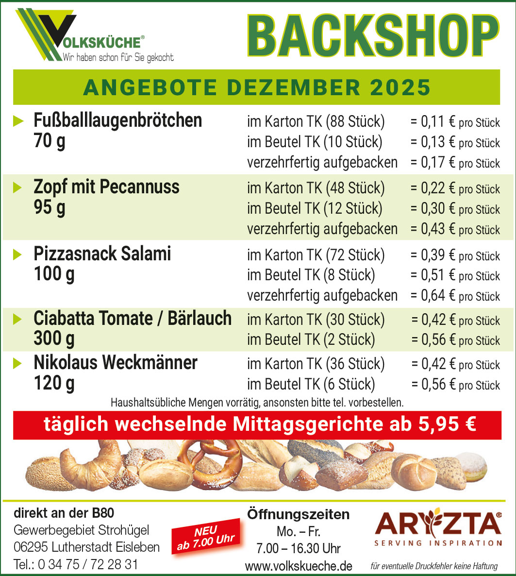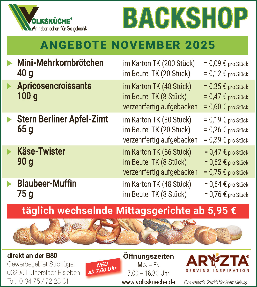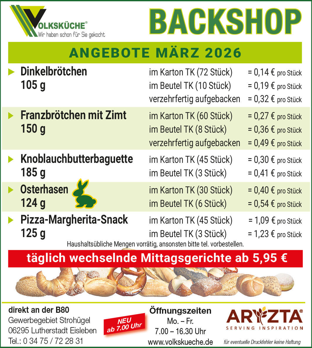 Öffnungszeiten Backshop 07:00 - 16:30 Uhr